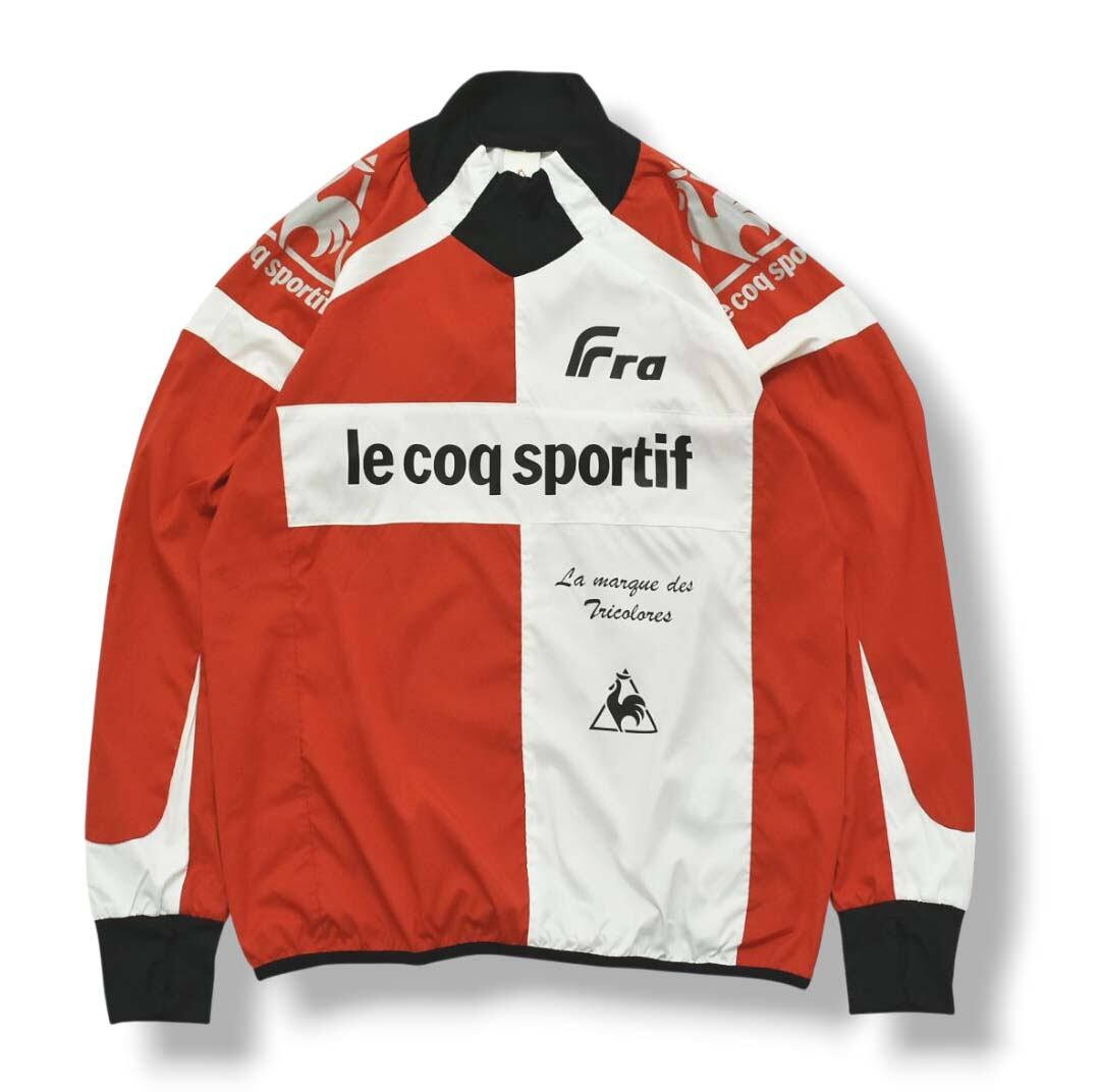 【デサント製】 ルコック スポルティフ le coq sportif 長袖 L/S ハイネック ウインド プルオーバー ピステ トレーニング ウェア M レッド メンズ