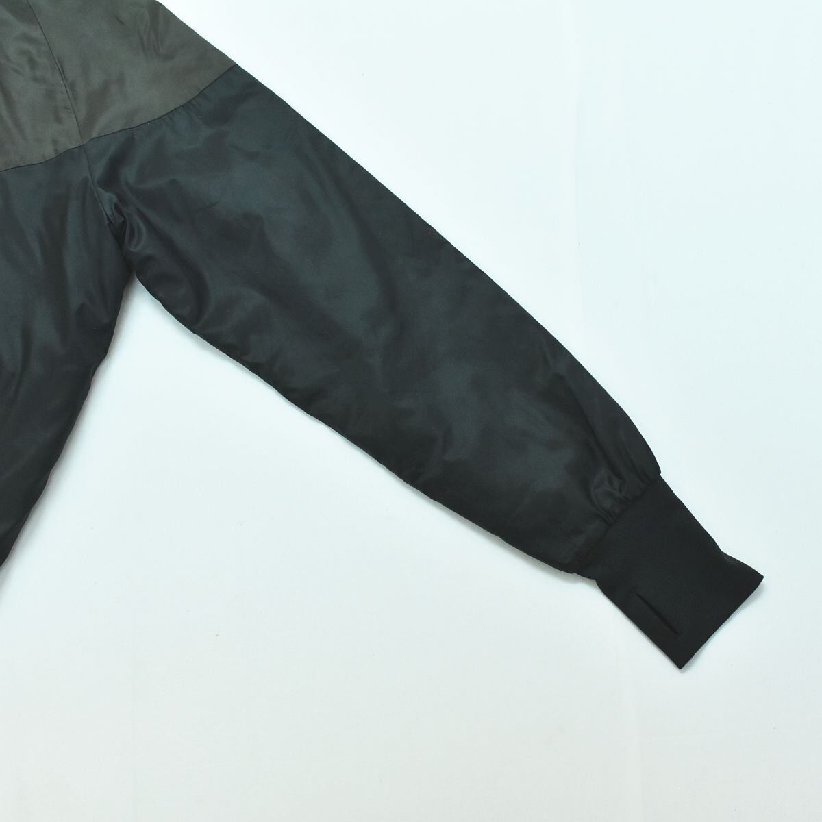 ナイロンライクなポリエステル素材で防風、防水性に優れています。中綿入りのキルティング裏地で保温性を確保。