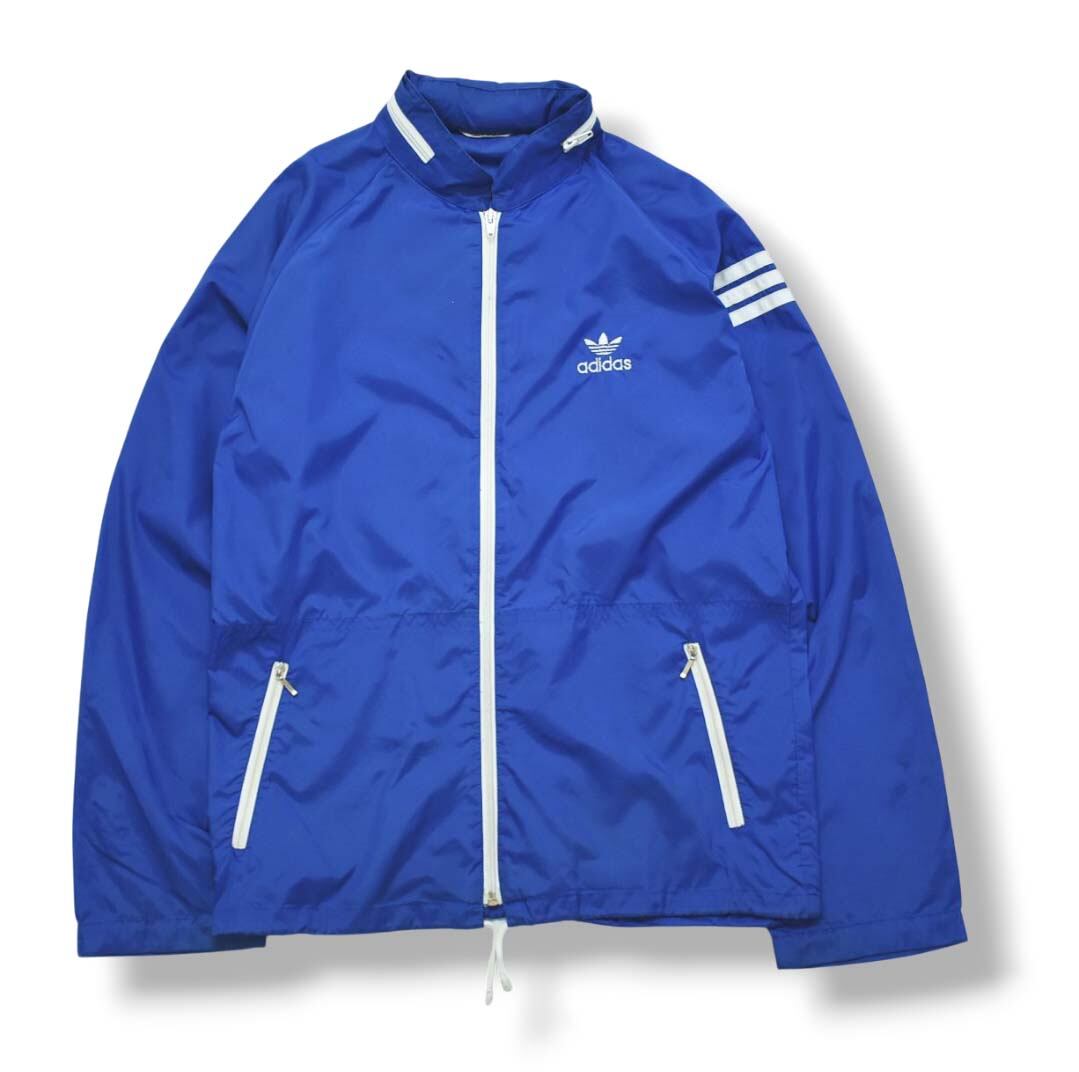 【デサント期】 80s ヴィンテージ アディダス adidas フーデット ナイロン ジャケット トレフォイル ロゴ スリーストライプス ラグランスリーブ L ライトブルー メンズ