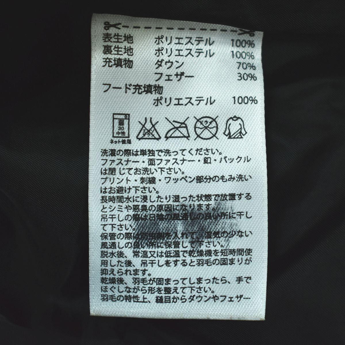 ・表地−ポリエステル100% 裏地−ポリエステル100% 中綿−ダウン70%フェザー30%