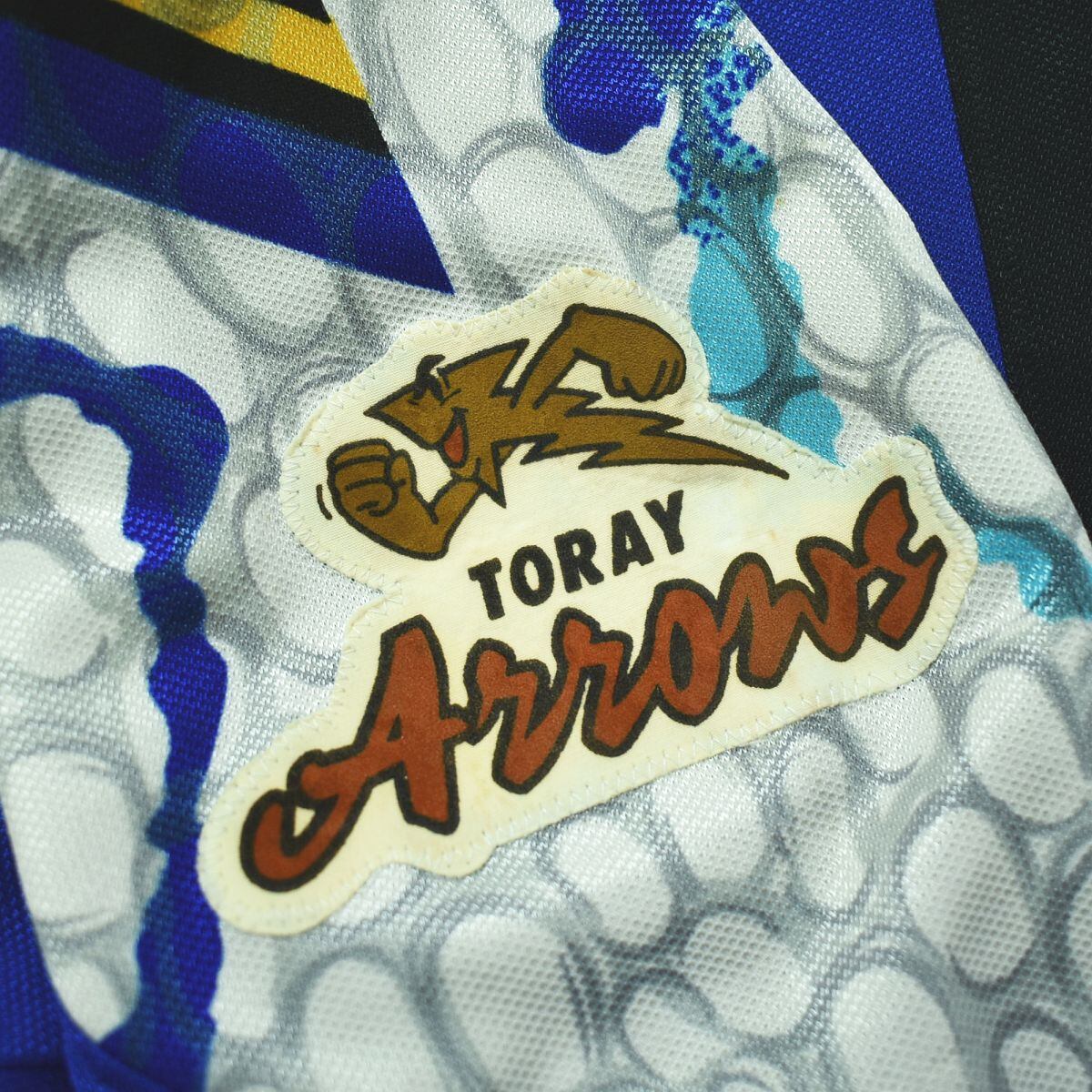 ブルーを基調とした大胆な総柄デザインが印象的で、チームロゴがあしらわれており、当時のユニフォームデザインを忠実に表現しています。
