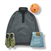 ハーフジップ仕様のプルオーバー型で、首元の開閉により温度調節がしやすく、カジュアルからスポーツミックスまで幅広く対応します。