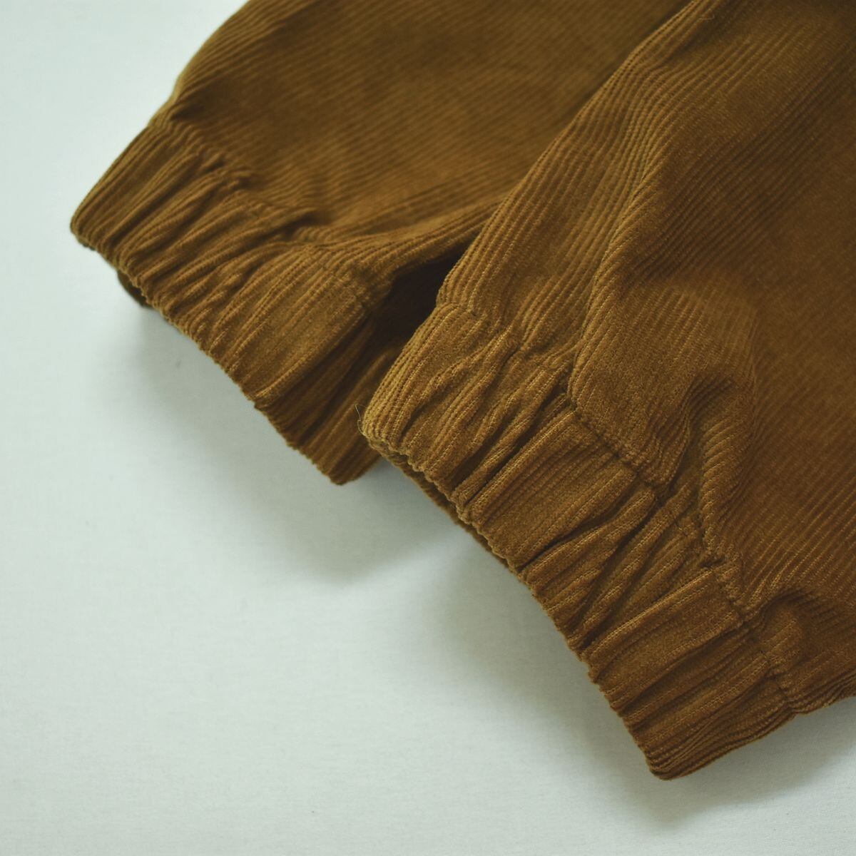 細畝コーデュロイの柔らかな質感と温かみのある風合いが魅力。ブラウンカラーは落ち着いた雰囲気を演出し、スポーツカジュアルからストリートミックスまで様々なコーディネートに対応します。