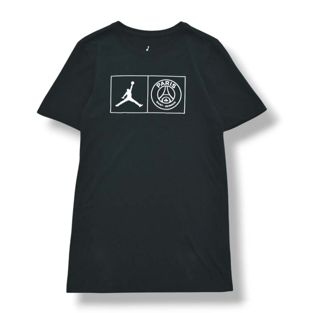 フロントにジョーダンジャンプマンロゴとPSGサークルロゴを組み合わせたダブルネームデザインが映えるTシャツ。