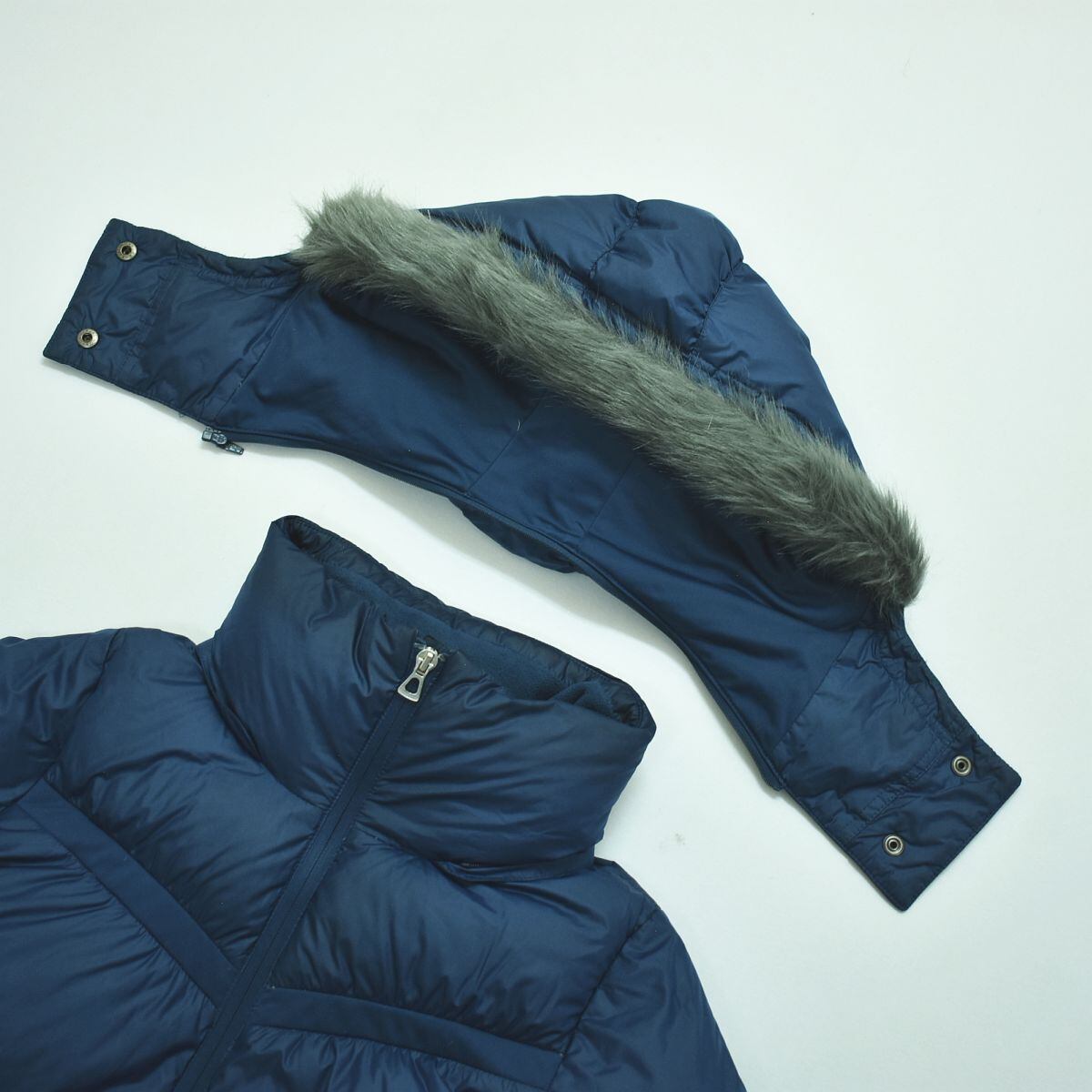軽量ながら優れた保温性を持つ中綿ダウン仕様で、冬場の冷気をしっかりシャットアウトします。