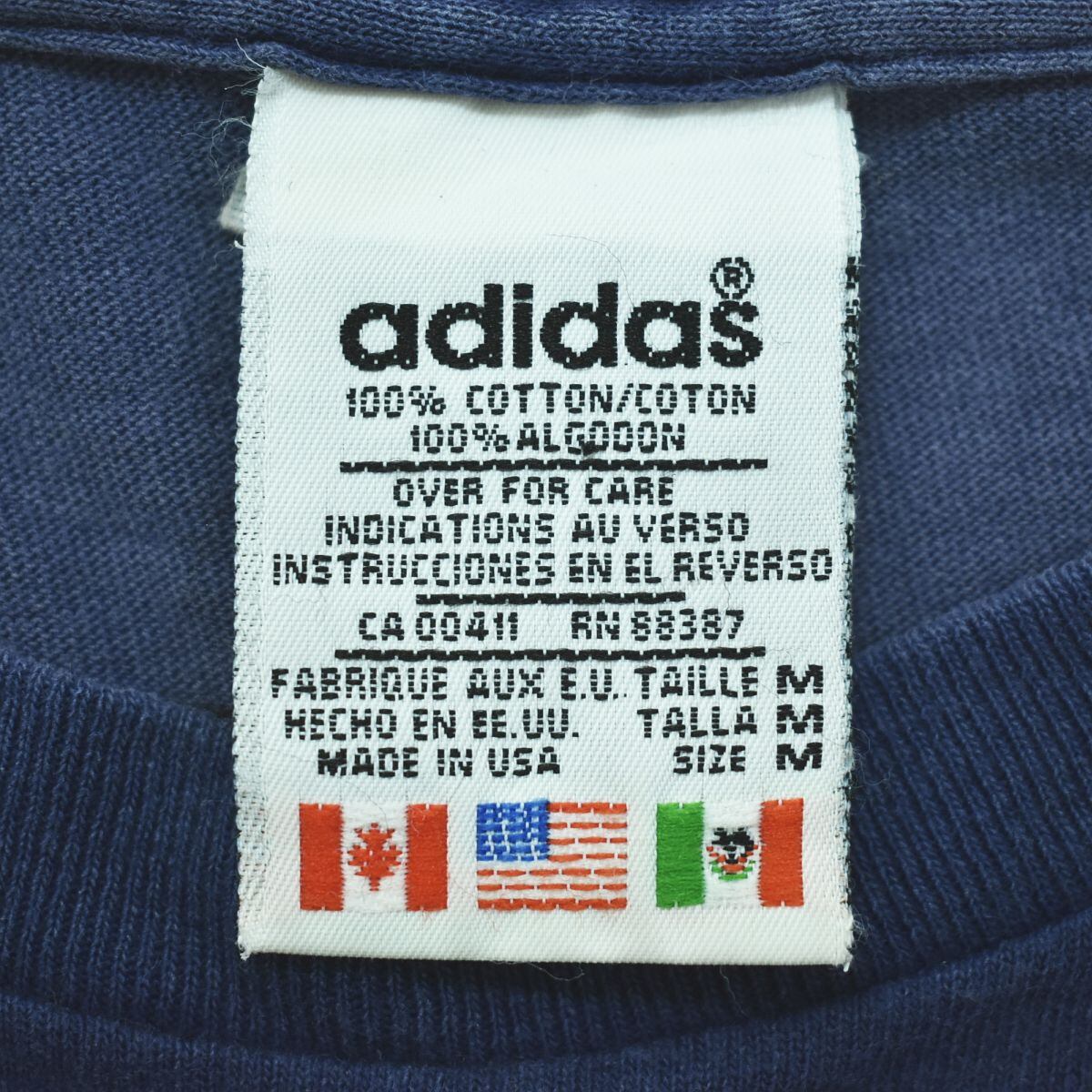 【定番】 90s ヴィンテージ USA製 アディダス adidas トレフォイル ロゴ プリント Tシャツ クルーネック M ネイビー ストリート スポーツ カジュアル ビッグシルエット メンズ