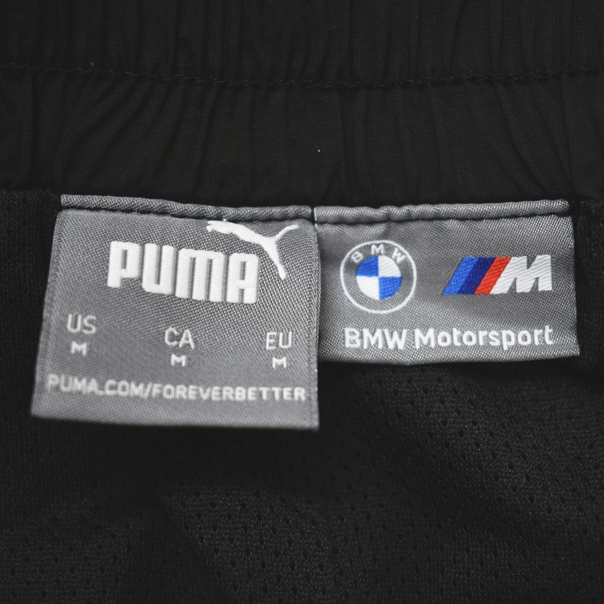 プーマ PUMA x BMW M ダブルネーム ナイロン ウィンド パンツ バックルベルト ロゴ プリント 裏地 メッシュ M ブラック モーター スポーツ ストリート カジュアル ウェア メンズ
