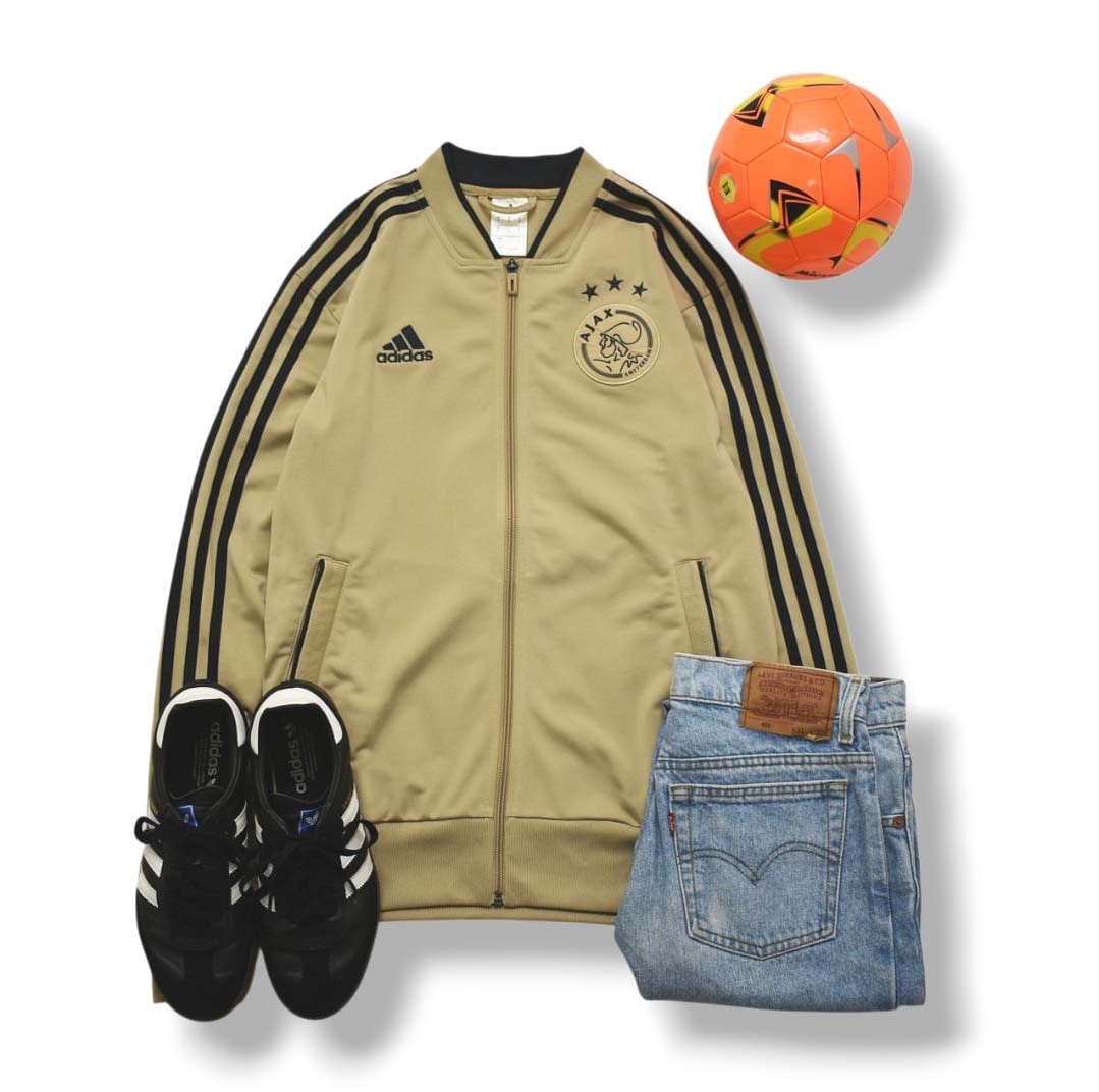 アディダス adidas アヤックス アムステルダム Ajax Amsterdam 2018 トラック ジャケット ジャージ スリーストライプス 裏起毛 M ゴールド サッカー ウェア メンズ