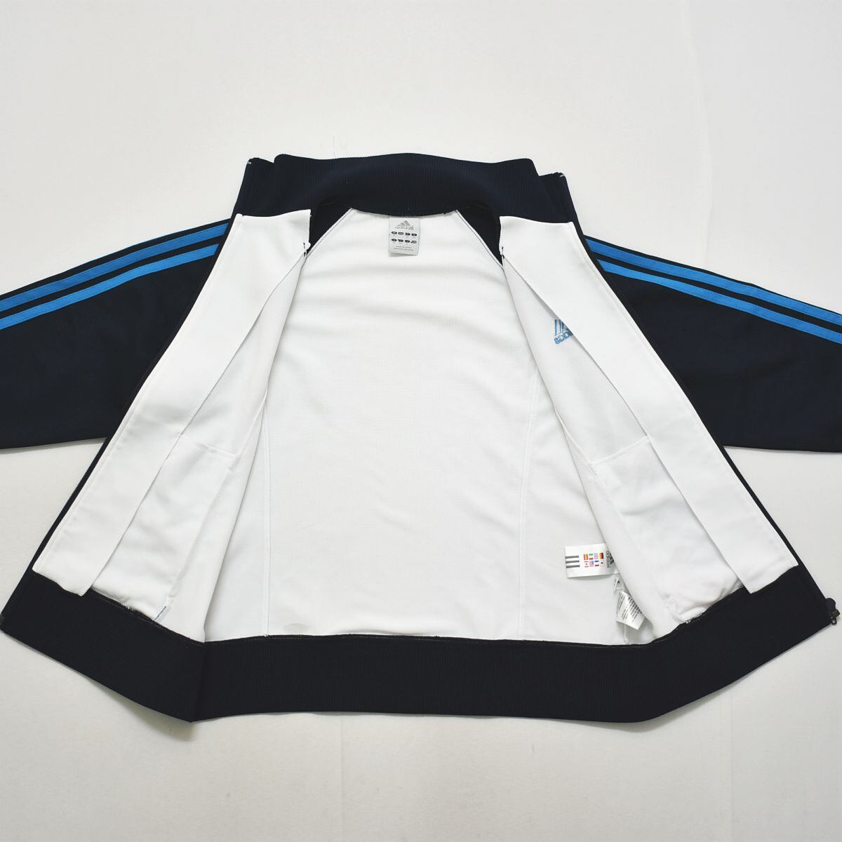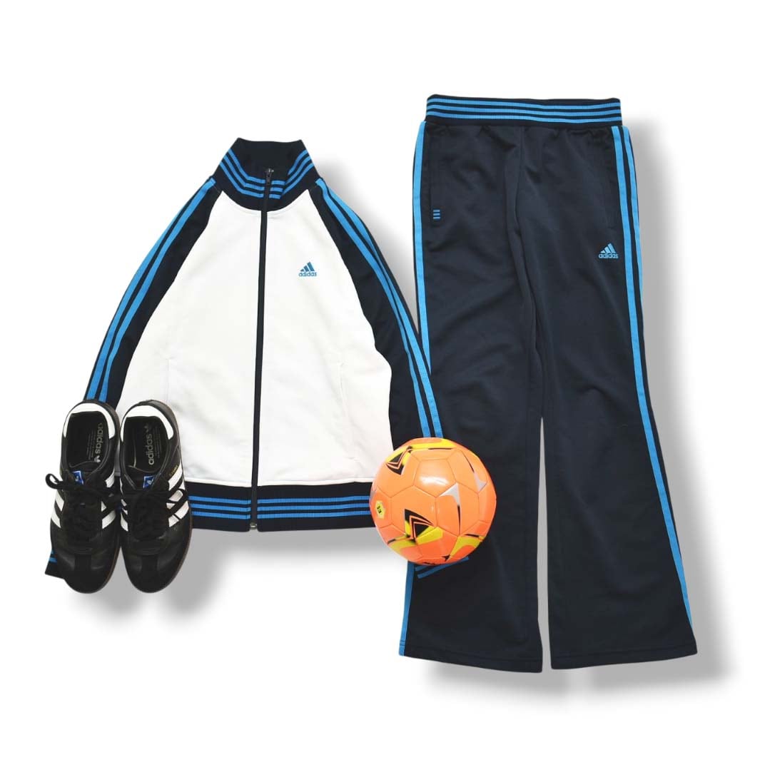 アディダス adidas トラック スーツ ジャージ セットアップ 上下 パフォーマンス ロゴ スリーストライプス ジャケット x パンツ S ホワイトxネイビー スポーツ ウェア レディース ♪