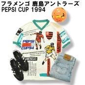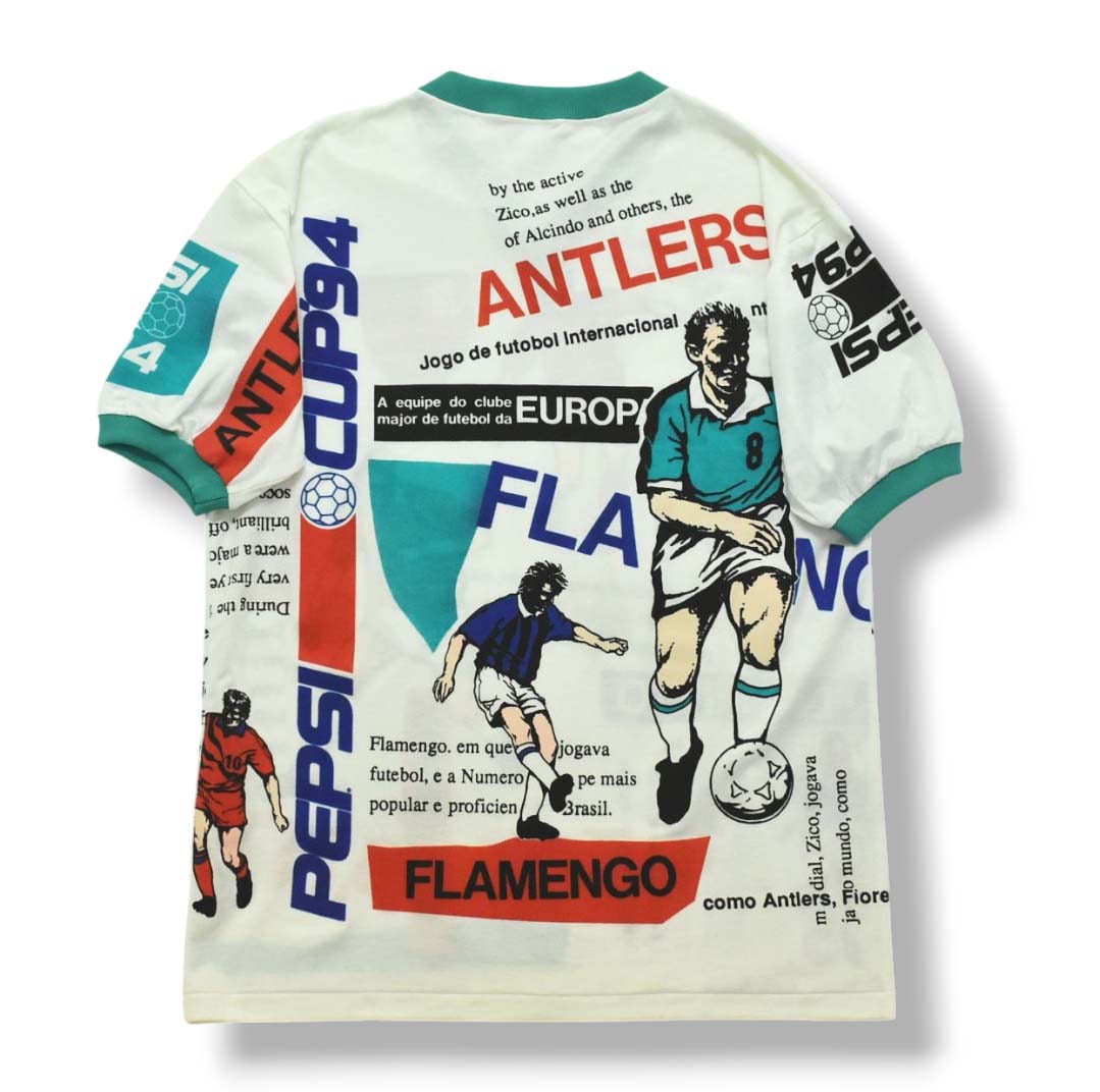 Jリーグの鹿島アントラーズとブラジルのフラメンゴの試合を記念して製作されたアイテムで、総柄のプリントにそれぞれのチーム名が記載されています。