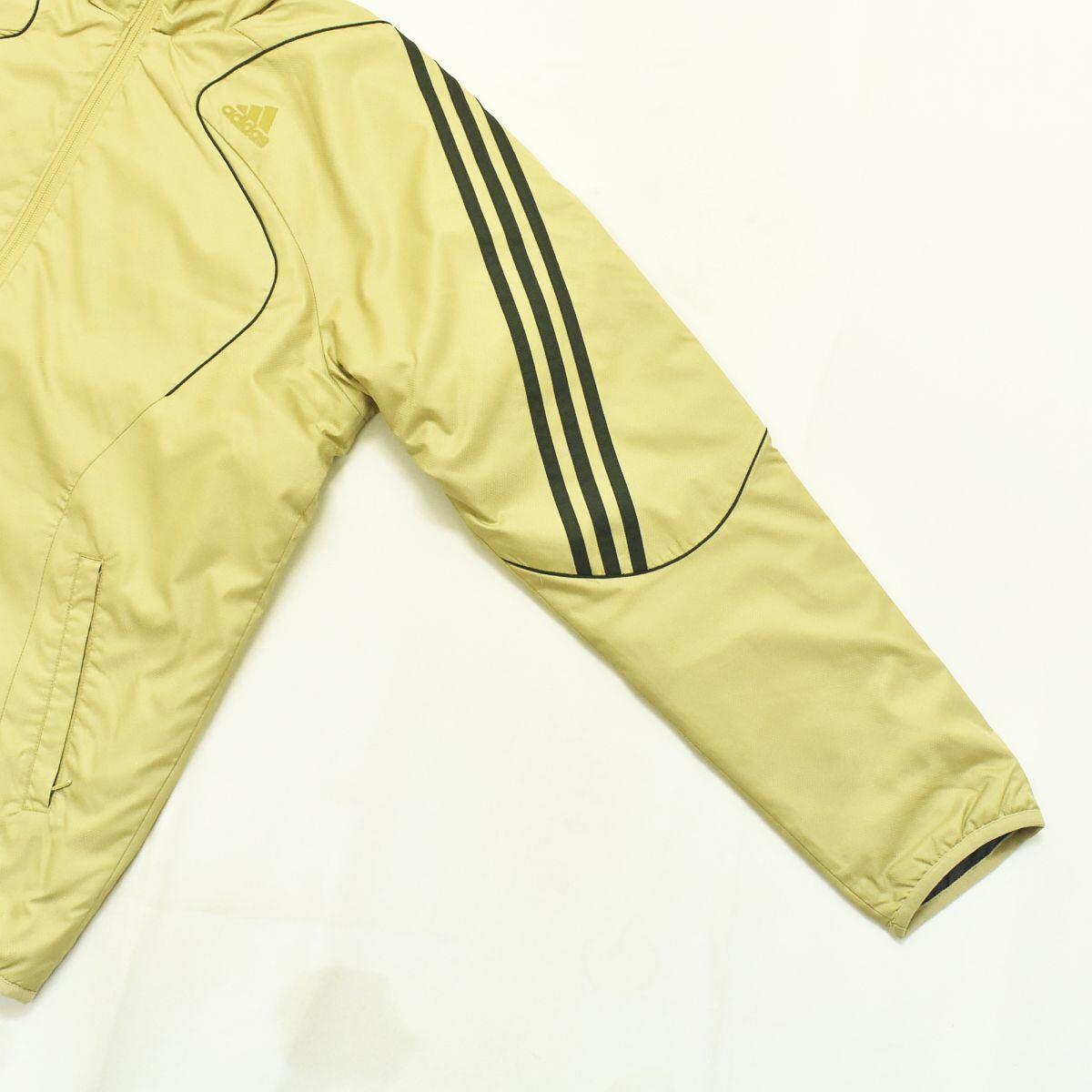 ナイロンライクなポリエステル素材で防風、防水性に優れています。中綿入りで暖かいです。