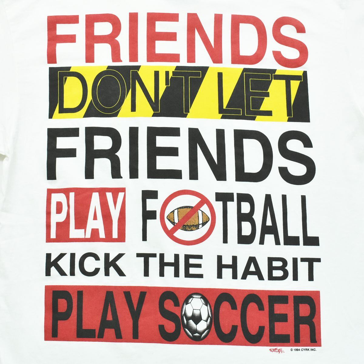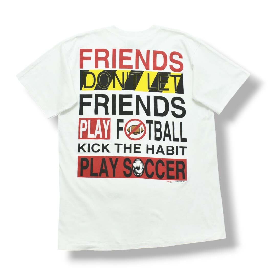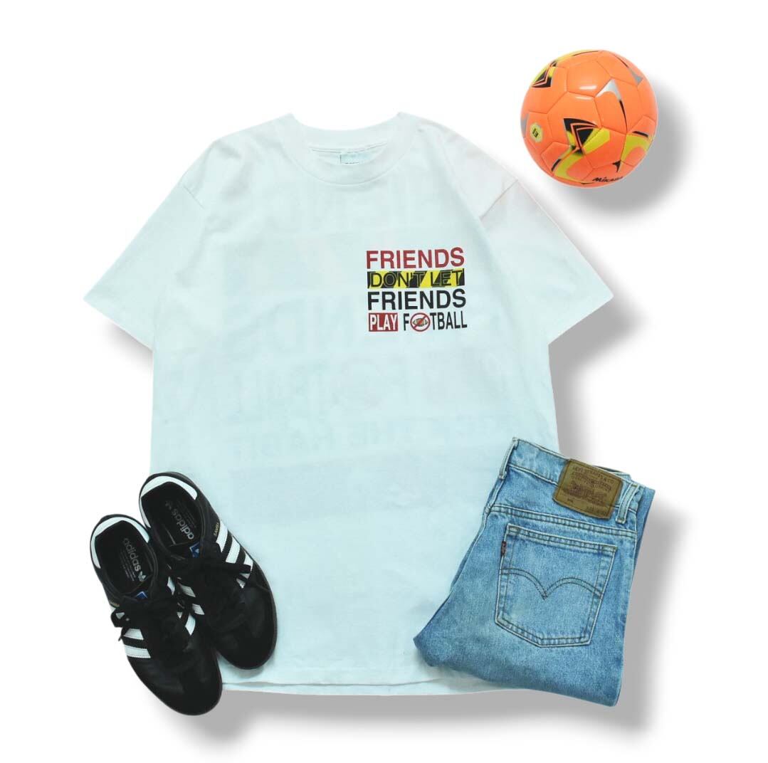 『 FRIENDS DON`T LET FRIENDS PLAY FOOTBALL 』和訳すると『友達ならアメフトはしないよな』『 アメフトをする習慣はやめてサッカーをしよう』と言うかなりのサッカー愛がこもったメッセージがプリントされています。